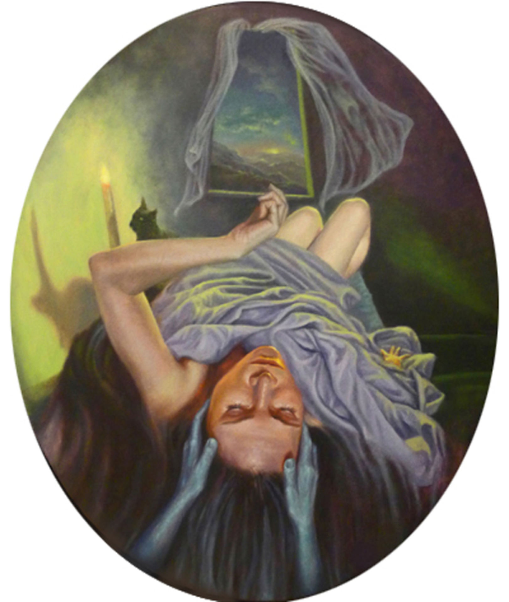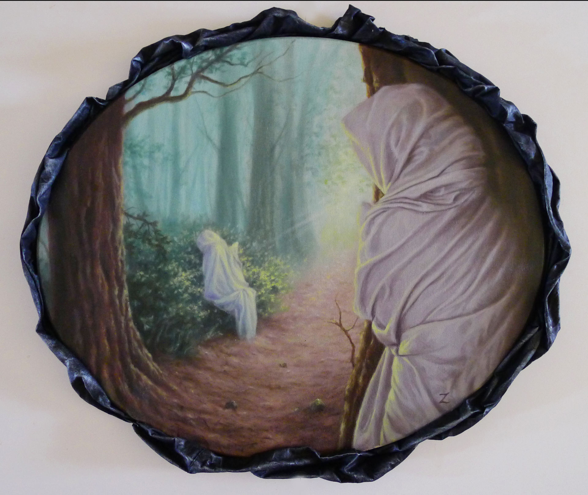 In your paintings are these veiled and cloaked flying figures you refer to as a “symbolic figure in the mythology of your own mind.” Who are these beings and what do they represent to you?